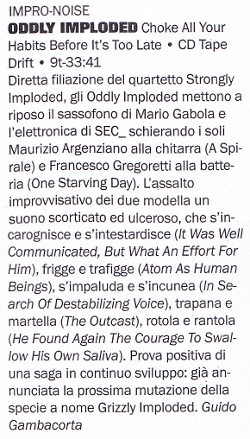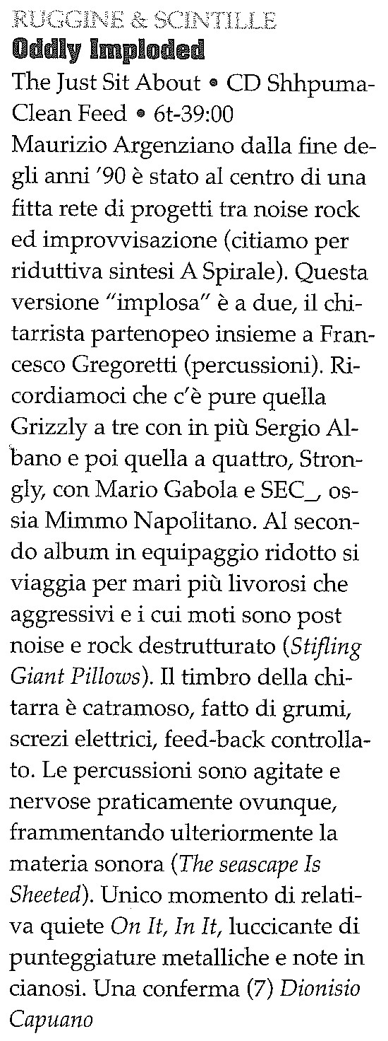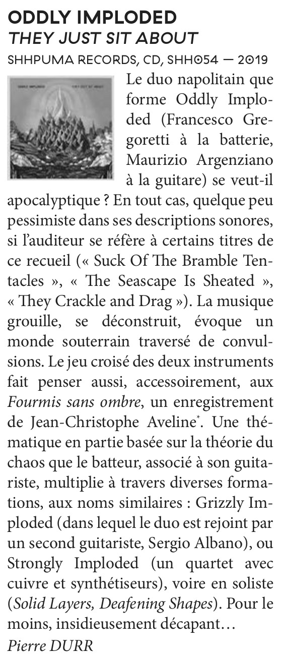 Oddly Imploded is an Italian duo of Francesco Gregoretti (drums) and Maurizio Argenziano (guitar).